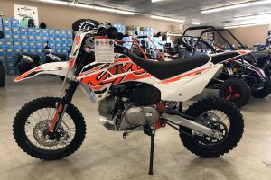 ADDITIONAL FEATURES The Budget friendly TSD110 comes standard with hydraulic dampened telescopic front forks , large disc brakes with a semi-automatic 4-speed transmission so you don’t need to worry about clutching. 14 and 12 inch wheels, seat height is 29.1 inches and weighs just 132.5 pounds. Electric and kick start.